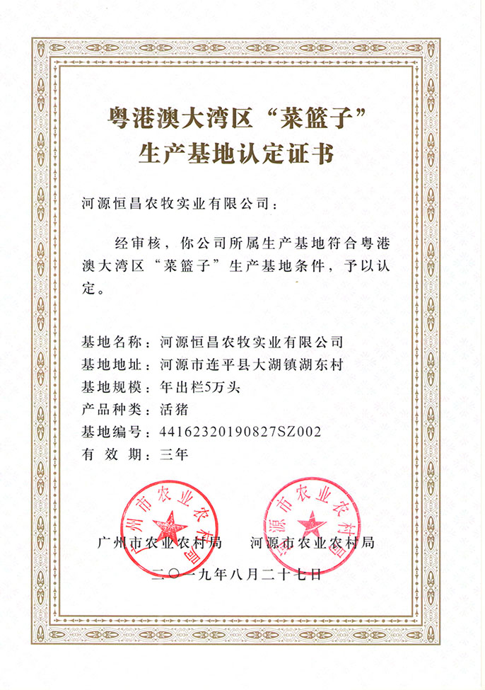 粤港澳大湾区“菜篮子”生产基地—恒昌农牧